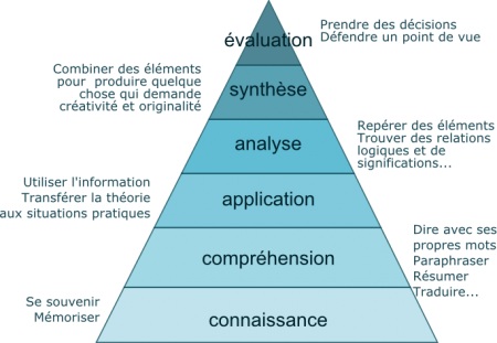 - Connaissances : Ce niveau implique la mémorisation ou la récupération de faits, de concepts ou de termes spécifiques sans nécessairement les comprendre ou les appliquer.